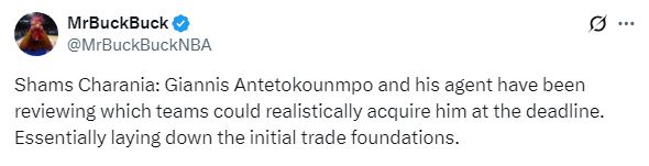 名記Shams還在節目中透露,字母哥和經紀人已經在研究哪些球隊有能力在交易截止日之前得到他——如果屆時他真的下定決心離開雄鹿的話。多支球隊都有這個能力,但他會額外注意尼克斯的動態。