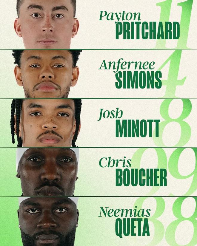 凱爾特人:米諾特、布切爾、科塔、普裏查德、西蒙斯